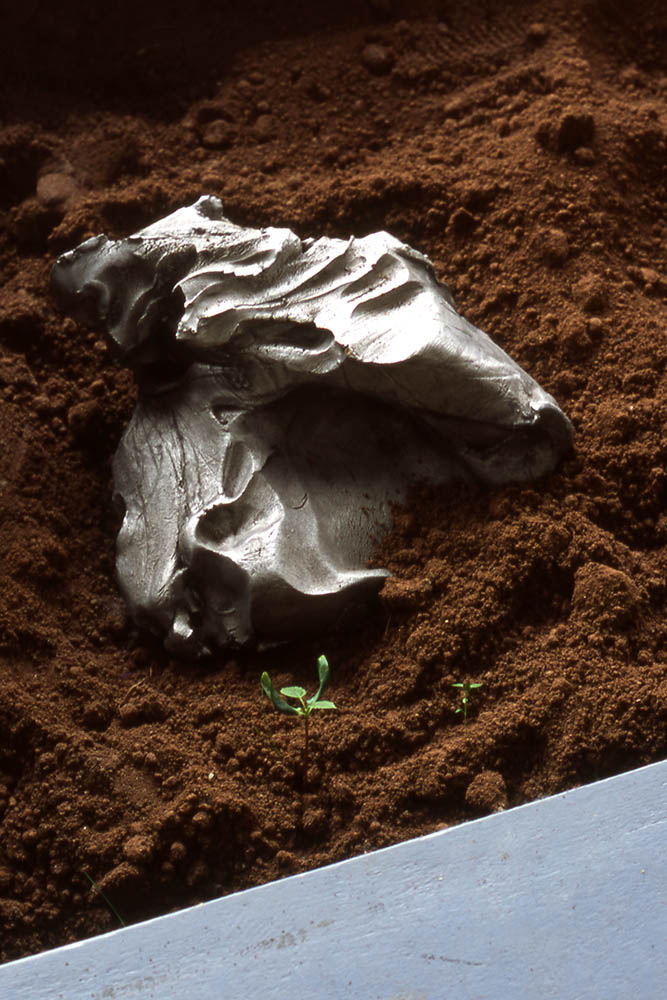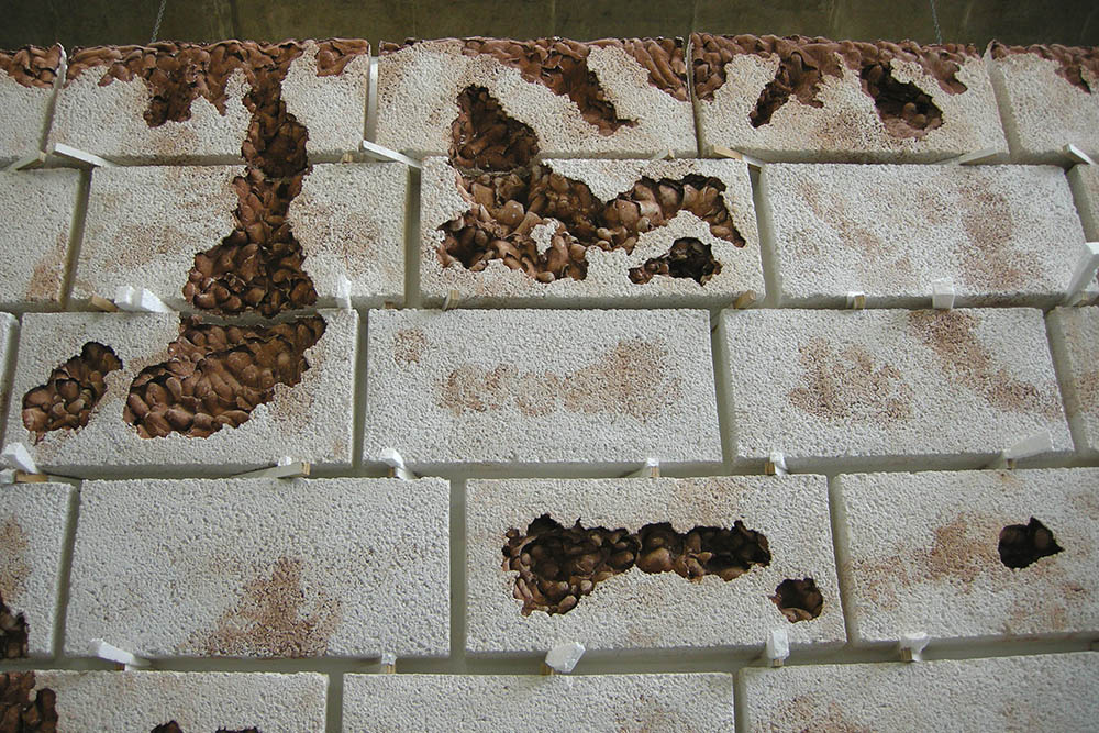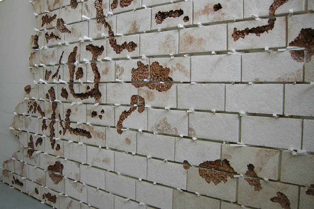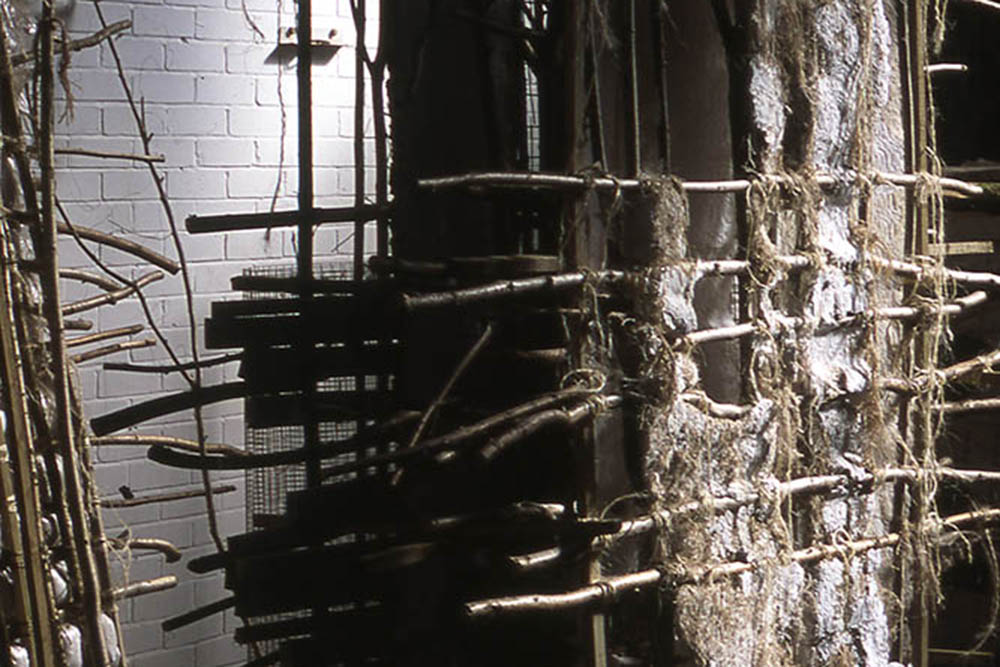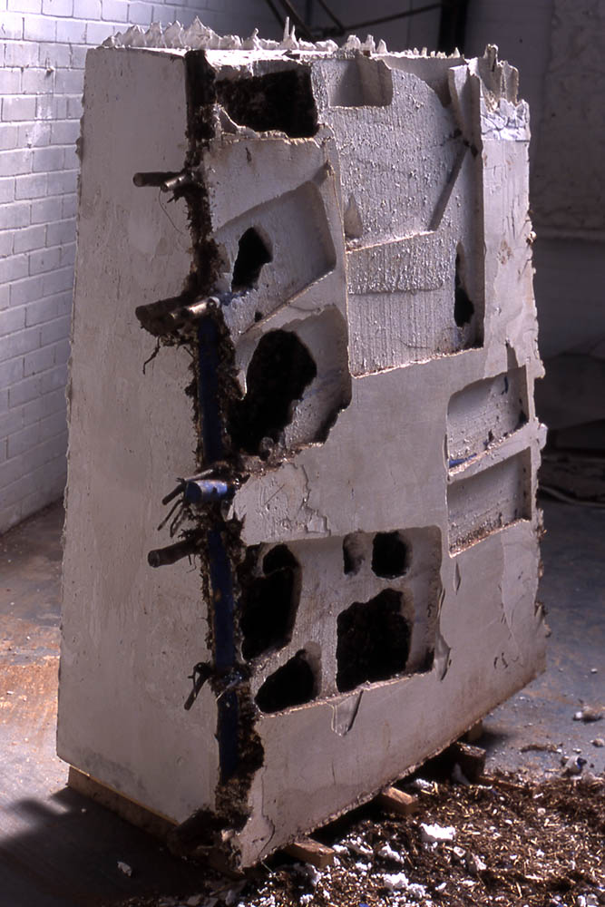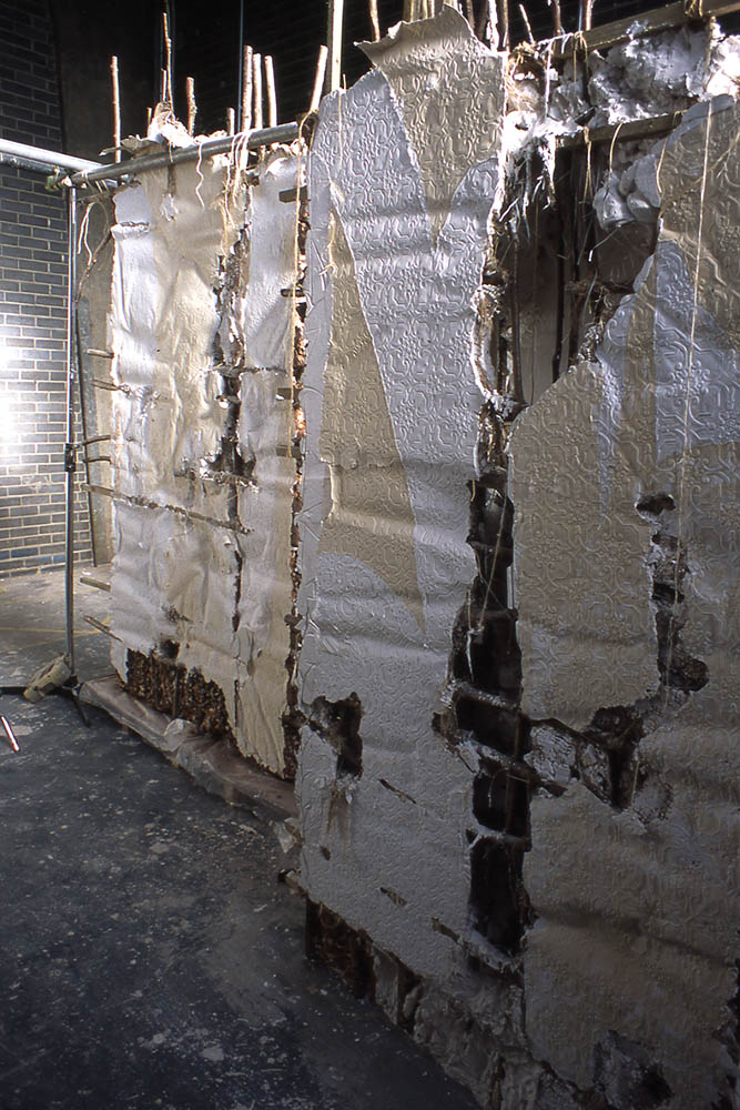 This piece was the physical construction of an invisible space between the brick wall of my studio and the clay and stick relief (Panel V) in front of it.