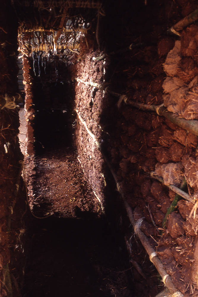 Two short films referencing binary oppositions, embedded in the processes of making Igbo Mbari Houses, are seen as 'Night' and 'Day'.