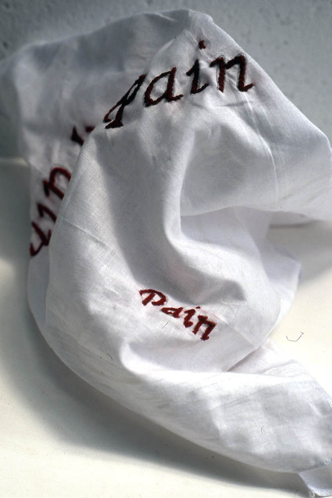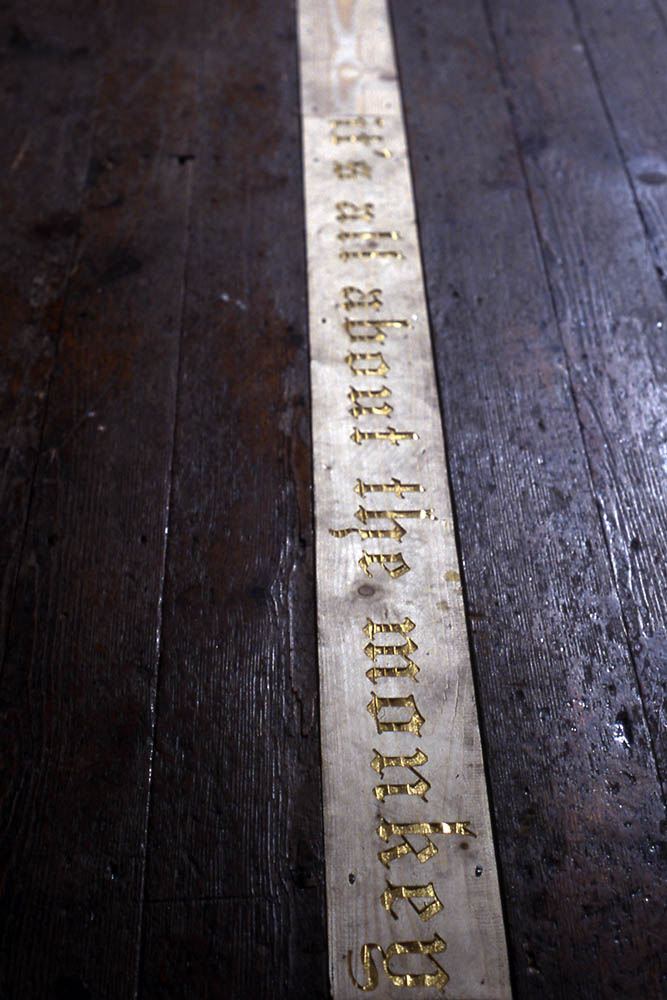 This installation uses text, sound and smell to create contrasting elements in the context of a Christian chapel.