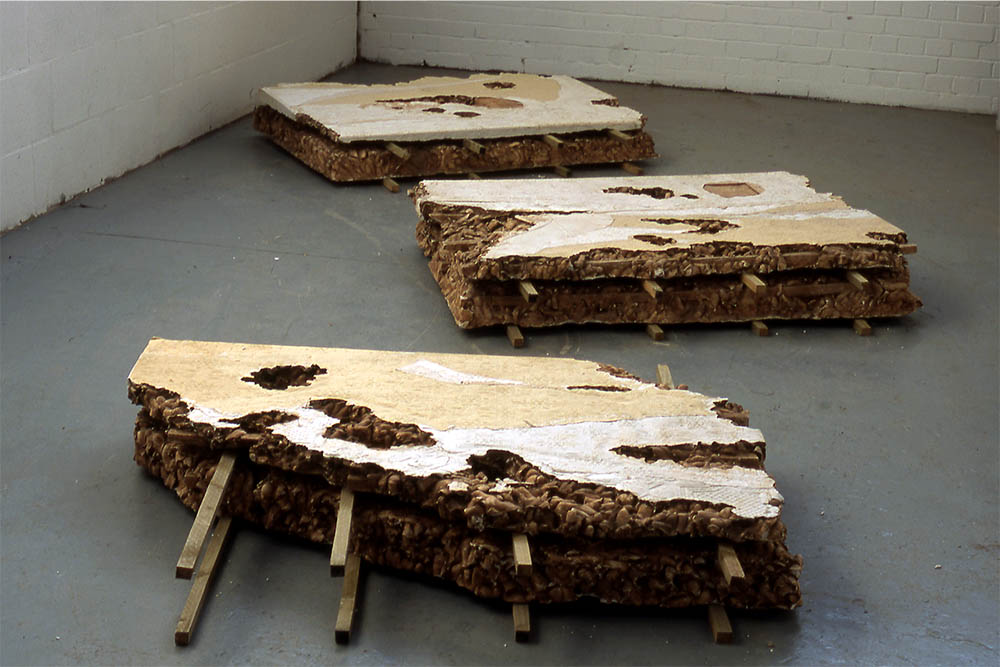 The Panel Series evolved from deconstructing ‘Shelter’ a large architectural piece made from a clay, straw and sand mixture.